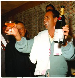 During the Open, he blurted out to a group of sportswriters with whom he was drinking beer, “If I win this thing, guys, it’ll be champagne all around, not beers, tomorrow.” He won, his first big win on the pro tour, and the champagne flowed and from then on, he was known as “Champagne” Tony. His career skyrocketed as he finished one stroke behind the legendary Jack Nicklaus at the Masters in 1963 and played on the United States winning Ryder Cup team. In 1964 he won the championships of the World Series of Golf, the Crosby National Pro Am, the Thunderbird Classic, Cleveland, Buick and British Opens. In 1965 he was second only to Nicklaus in earnings and again participated on America’s winning Ryder Cup team.